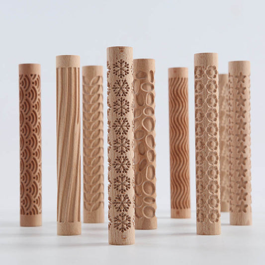 木製壓印花紋模具套裝 (十件) | Embossed Rolling Pin Kit (10-piece set)